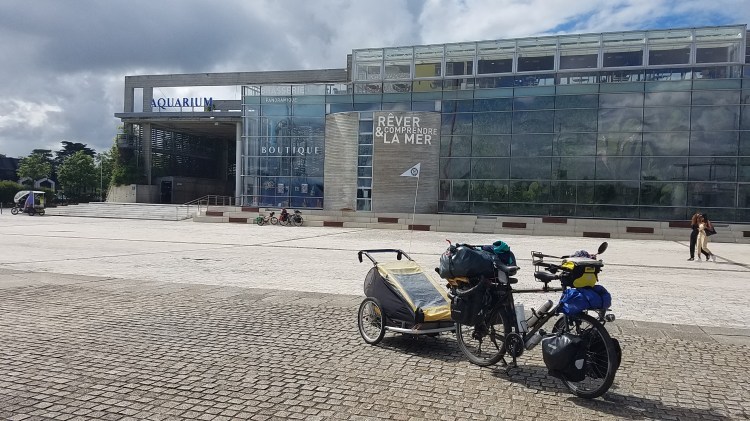 Tout cela nous a remis dans de bonnes conditions pour remonter en selle jeudi 18 juin direction Rochefort. Nous étions prêts à 10h pour une fois. Super timing ! Nous avons tout de même pris un peu de bon retard grâce au petit arrêt sur la route pour faire un dernier bisous à la mère de Sophie puis à la rencontre fortuite avec Martine, ancienne prof de sport de Marc, avec qui nous avons gardé un lien assez fort et que nous n’avions pu voir avant le départ… s’en sont suivis un arrêt à la boutique de l’aquarium puis au travail de Stéphane et Anne, le frère de Marc et sa compagne.