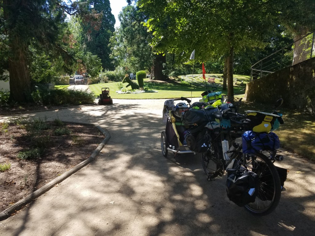 Les enfants s’endorment une fois de plus ce qui nous permet de boucler les 25kms par Doué assez facilement après un arrêt chez Thibault et Sophie qui nous avaient acceuillis en Warmshowers fin mai. Ils sont absents, eux aussi sur la route à vélo !