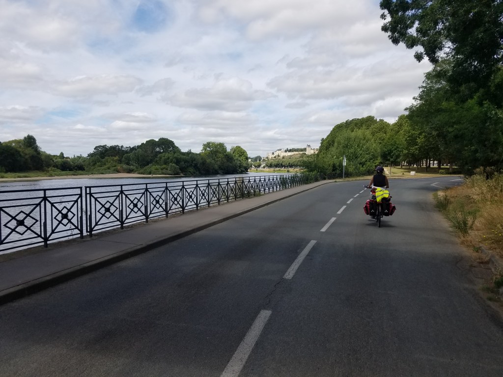 Nous roulons bien jusqu’à Chinon malgré un départ tardif. L’arrivée sur la ville est toujours aussi belle avec en toile de fond la forteresse royale qui surplombe la Vienne. Splendide.