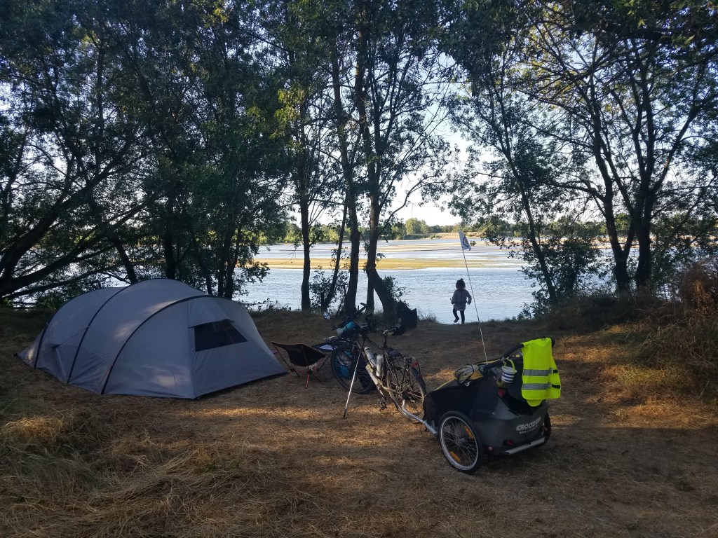 Nous discutons avec deux familles le temps du repas et en voyons passer une quantité impressionnante sur la route. Pa de doute nous sommes sur la Loire à Vélo! C’est super de voir de plus en plus de parents partir à l’aventure avec les enfants!
