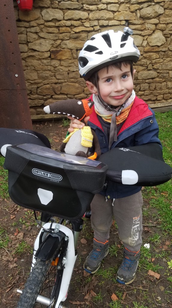 Loup avec Arthur sur son vélo
